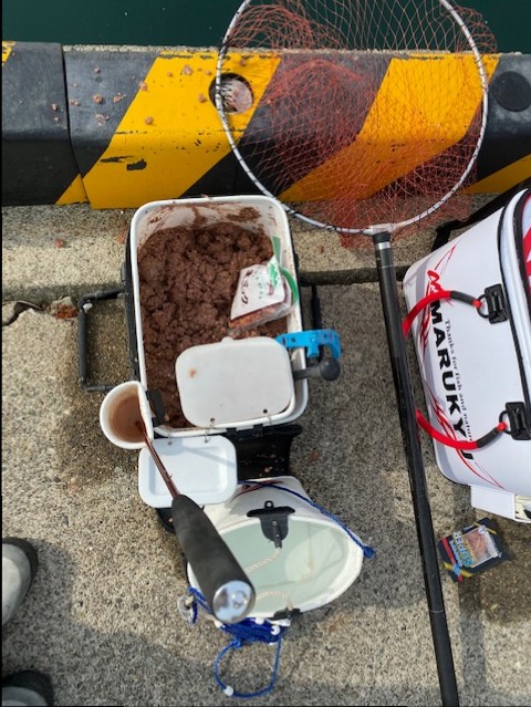 マキエサはチヌ用集魚剤・グレ用集魚剤を各1袋にオキアミ1.5kgです。