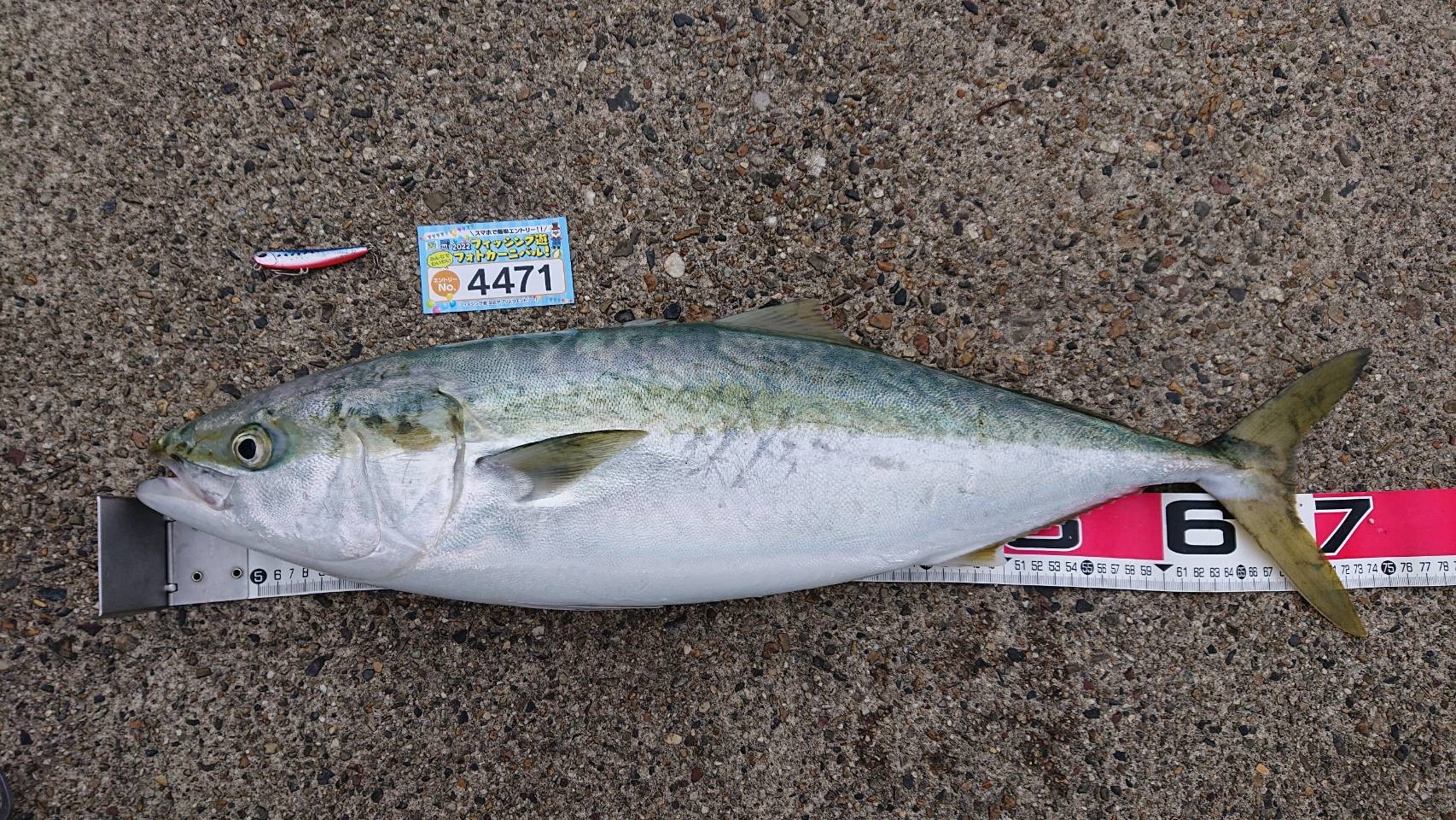 エントリーNo:4471 魚種:[10]ブリ サイズ:74.5 釣った場所:知多