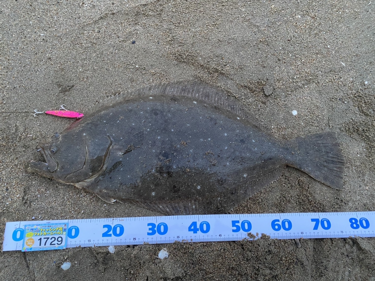 エントリーNo:1729 魚種:[11]ヒラメ サイズ:80 釣った場所:三重サーフ